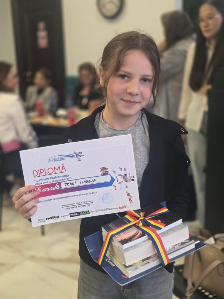 În cadrul celei de a VIII-a ediții a Campaniei ”Susținem performanța”, miercuri, 17 septembrie 2025, 45 de adolescenți și tineri din sistemul de protecție, care în anul școlar 2024-2025 au obținut medii peste 9.00 sau au avut rezultate deosebite extrașcolare, au fost premiați într-un cadru festiv la Restaurantul AZZA din municipiul Suceava.